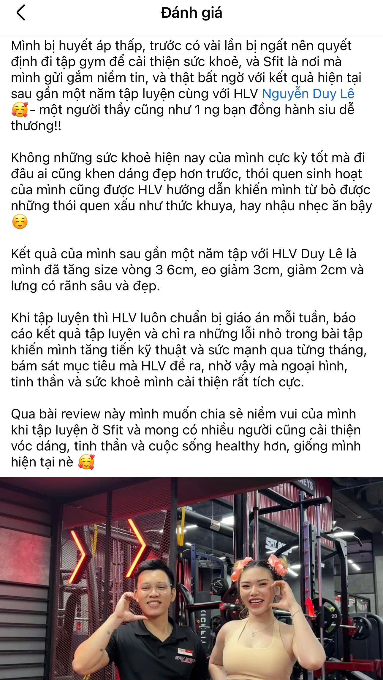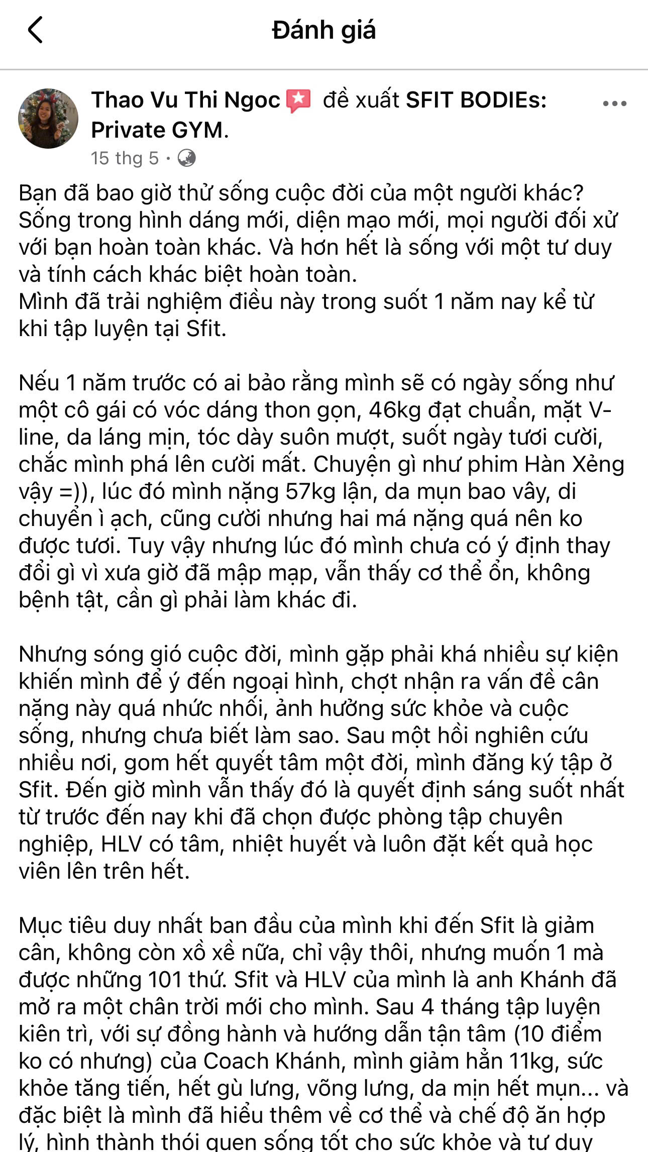 Không chỉ là nơi tập luyện mà còn là hành trình thay đổi. Học viên tại SFIT thường chia sẻ về quá trình chuyển đổi cả về thể chất lẫn tinh thần, từ cảm giác tự tin hơn đến lối sống lành mạnh, bền vững.